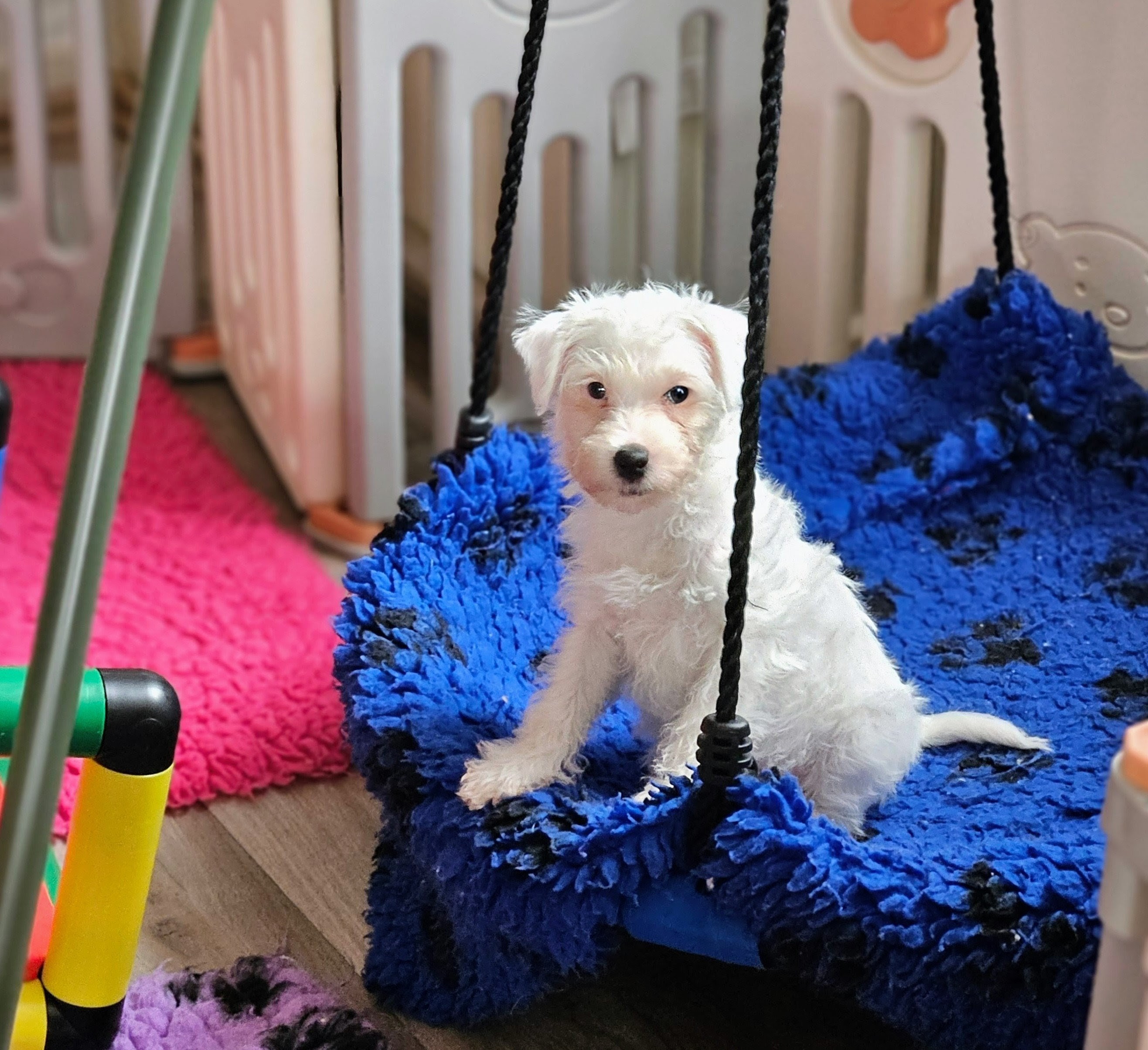 Nun wird es wuselig. Die Welpen verlassen die Wurfkiste, spielen mit den Geschwistern und lernen Umwelt und Sozialpartner kennen.